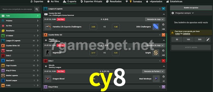 A aposta cy8 oferece aos jogadores a experiência mais conveniente de apostas em eSports!